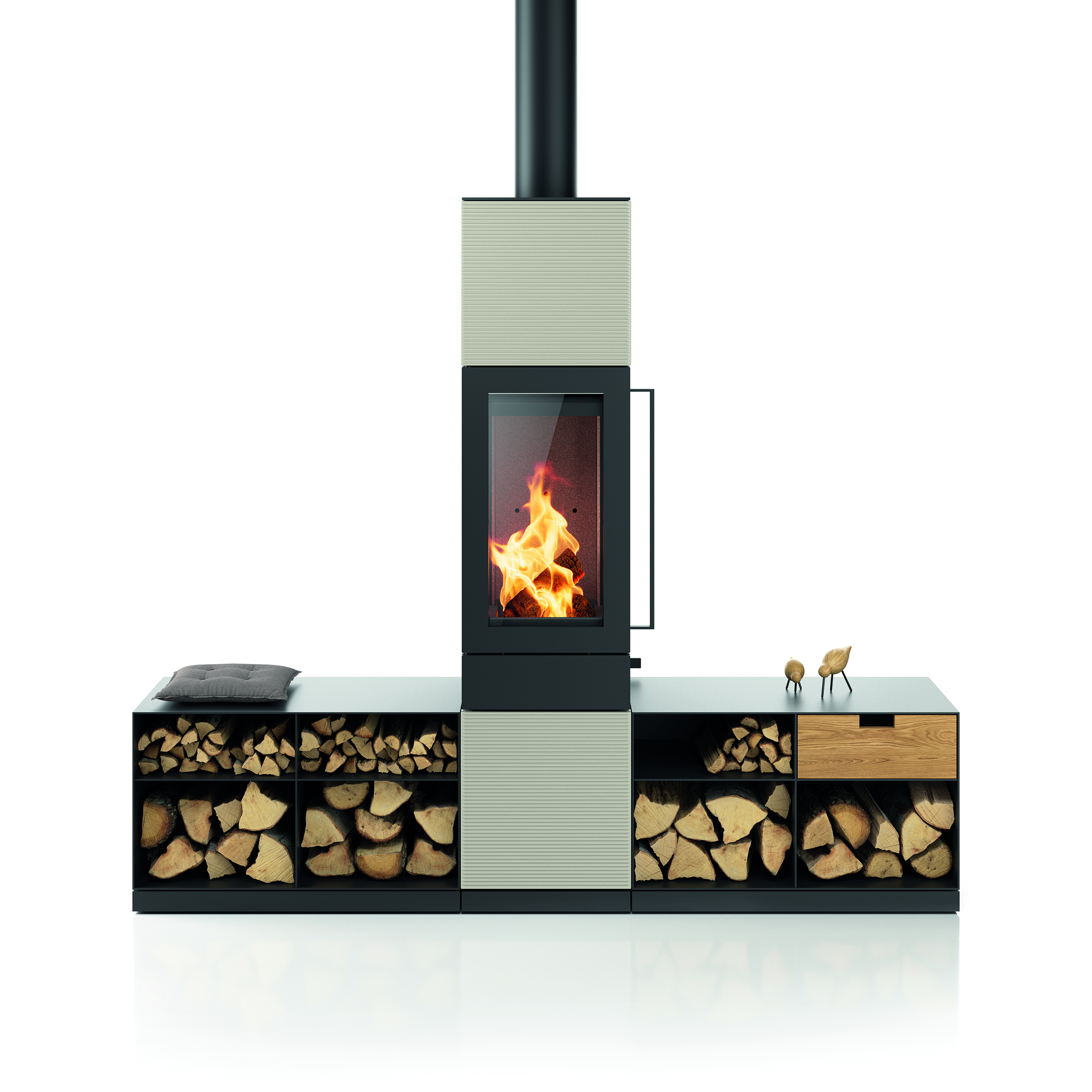 Hoch, schlank, elegant – mit seiner spektakulären Form setzt der Kaminofen ASTANA ein klares Statement. Über drei Sichtscheiben ist das Flammenspiel von jedem Ort im Raum erlebbar. Mit verschiedenen Farben und edlen Oberflächen lässt sich der Ofen individuell auf das persönliche Wohnambiente abstimmen: ASTANA ist wahlweise mit handgefertigter Keramik in Lamellentextur, glatter Keramik-Oberfläche, natürlichem Speckstein oder einer Stahlvariante in unterschiedlichen Farbtönen erhältlich. Das Rohr für den abziehenden Rauch kann entweder oben oder hinten angeschlossen werden. Passend zum Designofen bietet HASE passende Regale zur Holzlagerung an, die sich flexibel integrieren lassen.